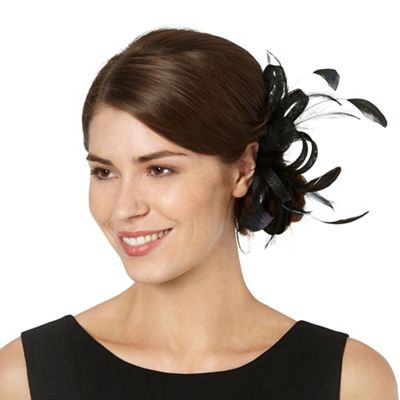 Women's black feather mesh fascinator hat with hair clips & rhinestones. Fascinator womens hat black 100% wool net cocktail elastic flower buttons 8x8. Free delivery available when you shop online. Pair with your favourite jewellery and killer heels to finish the look. Zac's alter ego lace & net fascinator with feathers on clip or aliceband.